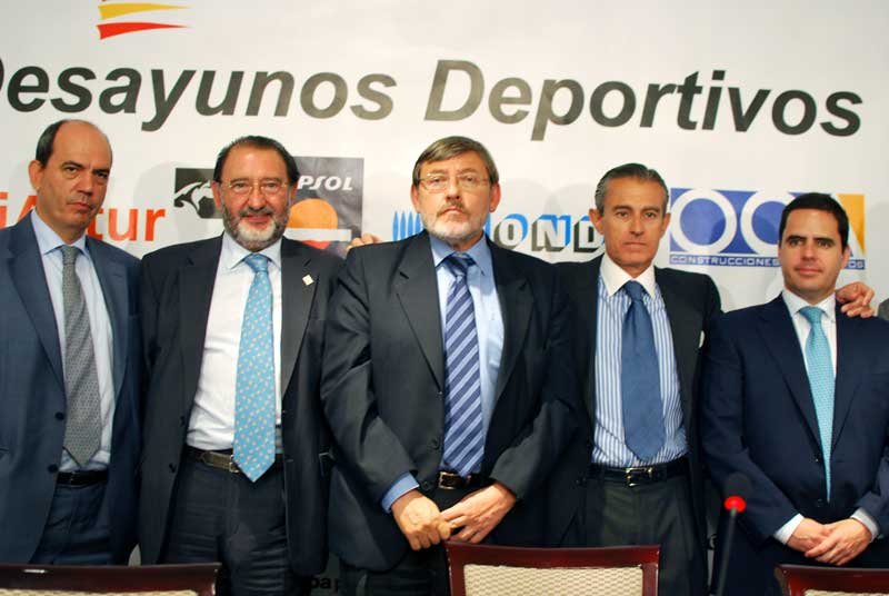 Foto de grupo de los Desayunos Deportivos de Europa Press en el Hotel Villa Magna, con Jaime Lissavetzky en el centro de la imagen.