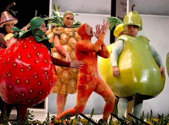 Con disfraces de frutas, los integrantes de la chirigota arremetieron contra los programas basura y los reality: "A la Shari la metieron adentro de Gran Hermano, mano / y ahora ya va enseñando sus tetas por las revistas, vistas / no sé cuánto concursante conocieron sus ovarios, varios / no sé quién querría tirarse a esta tía tan tremenda, menda"