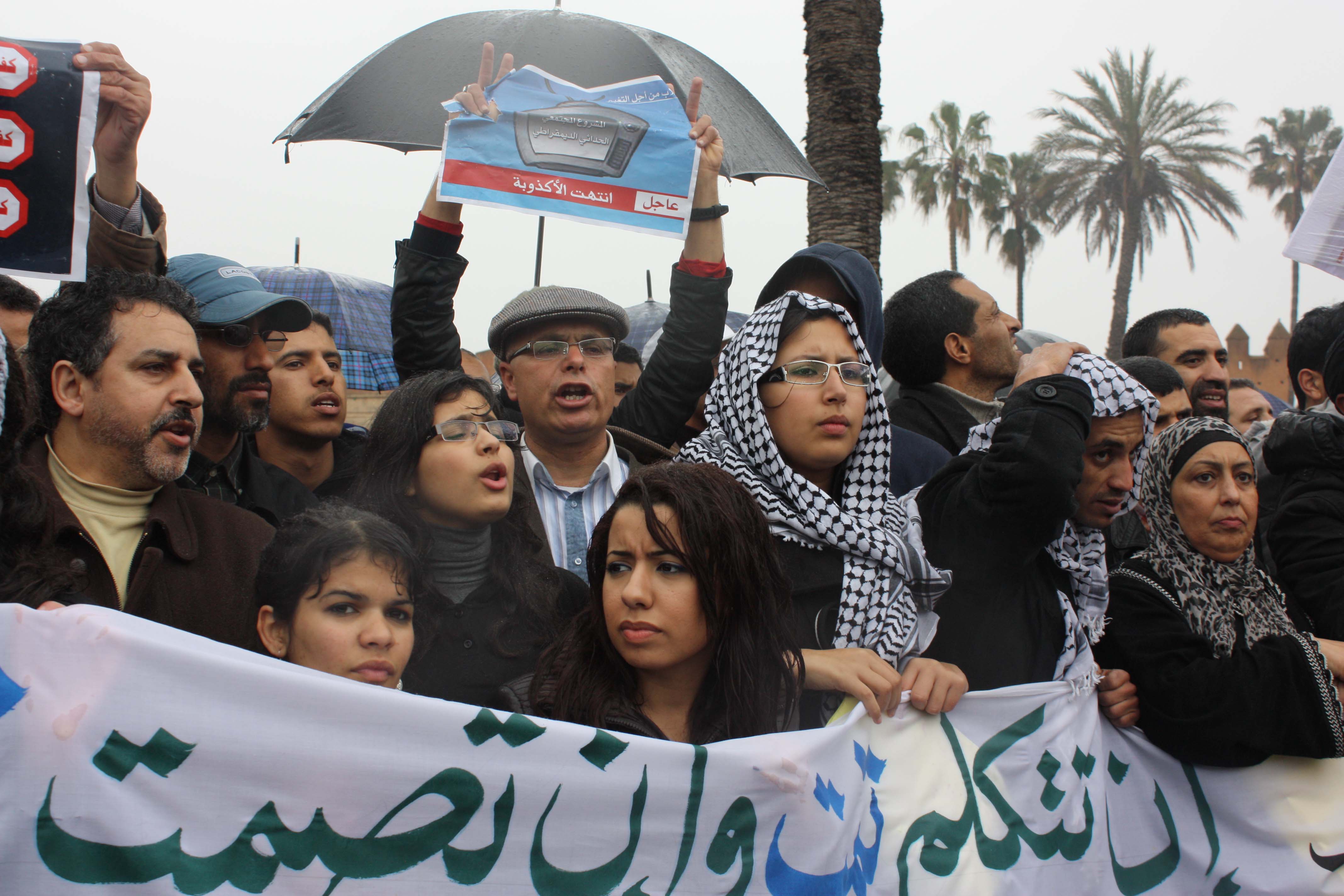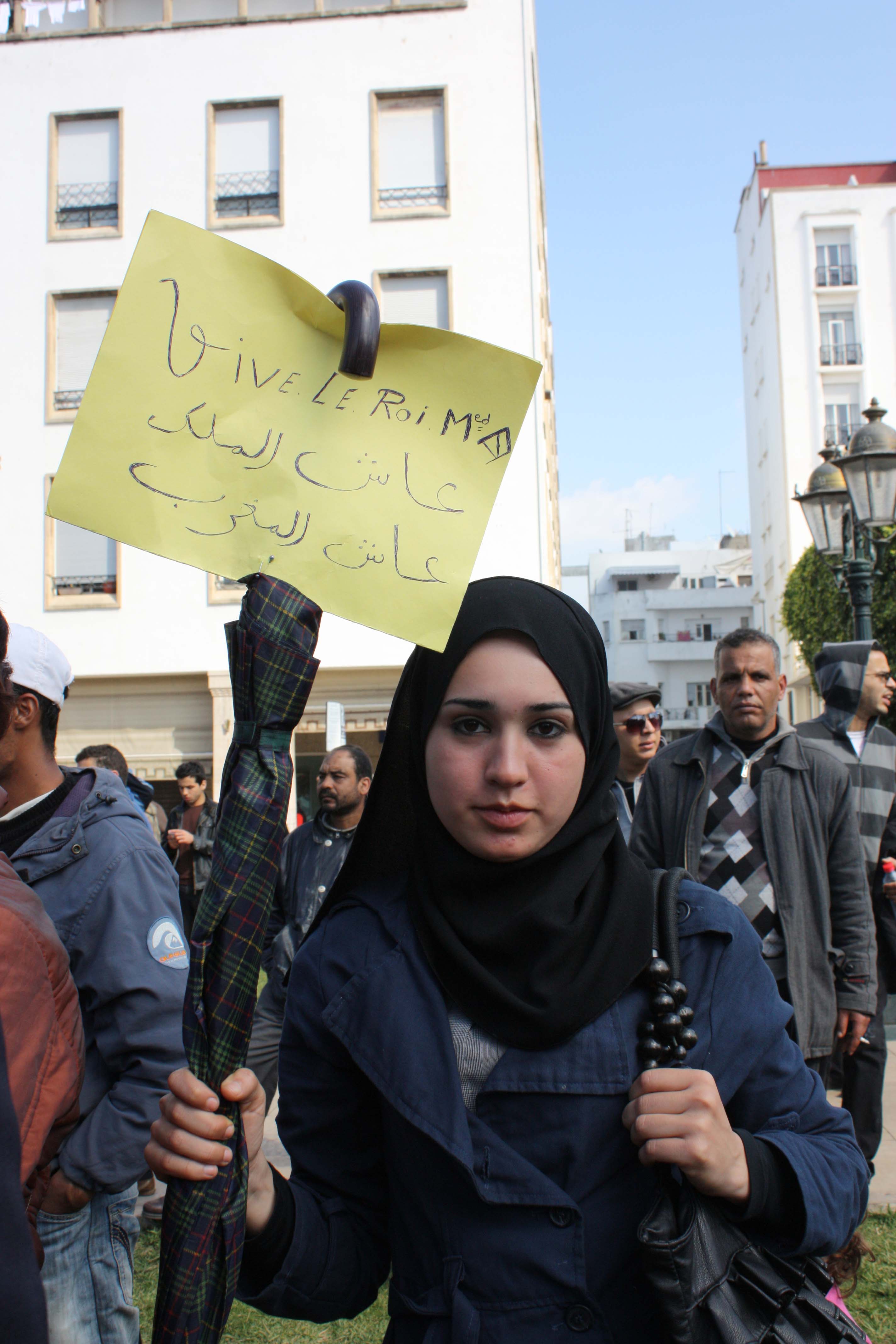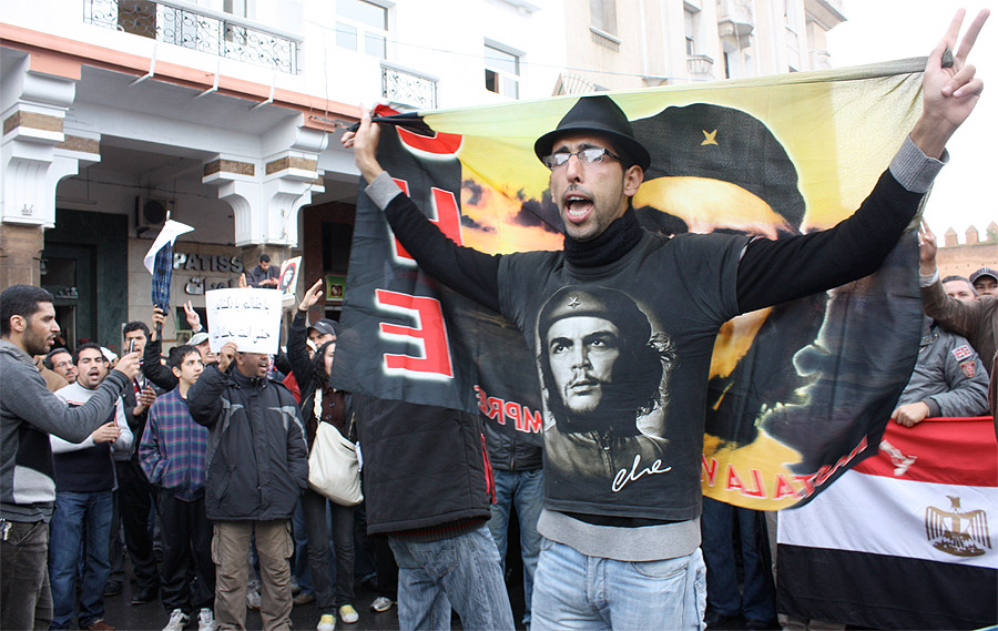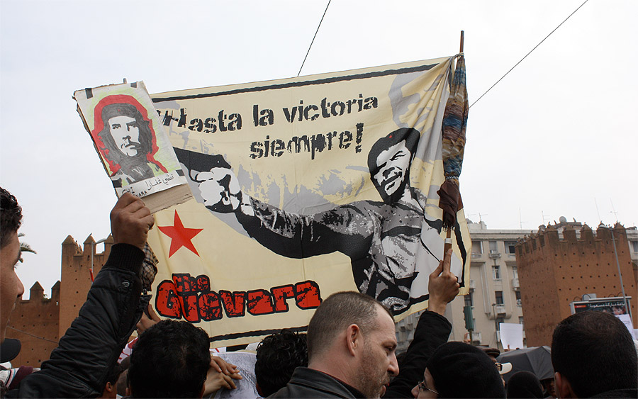 Mujeres con burkas, imágenes del Che Guevara y bereberes. Todos los Marruecos se mezclaron el 20 de Febrero.