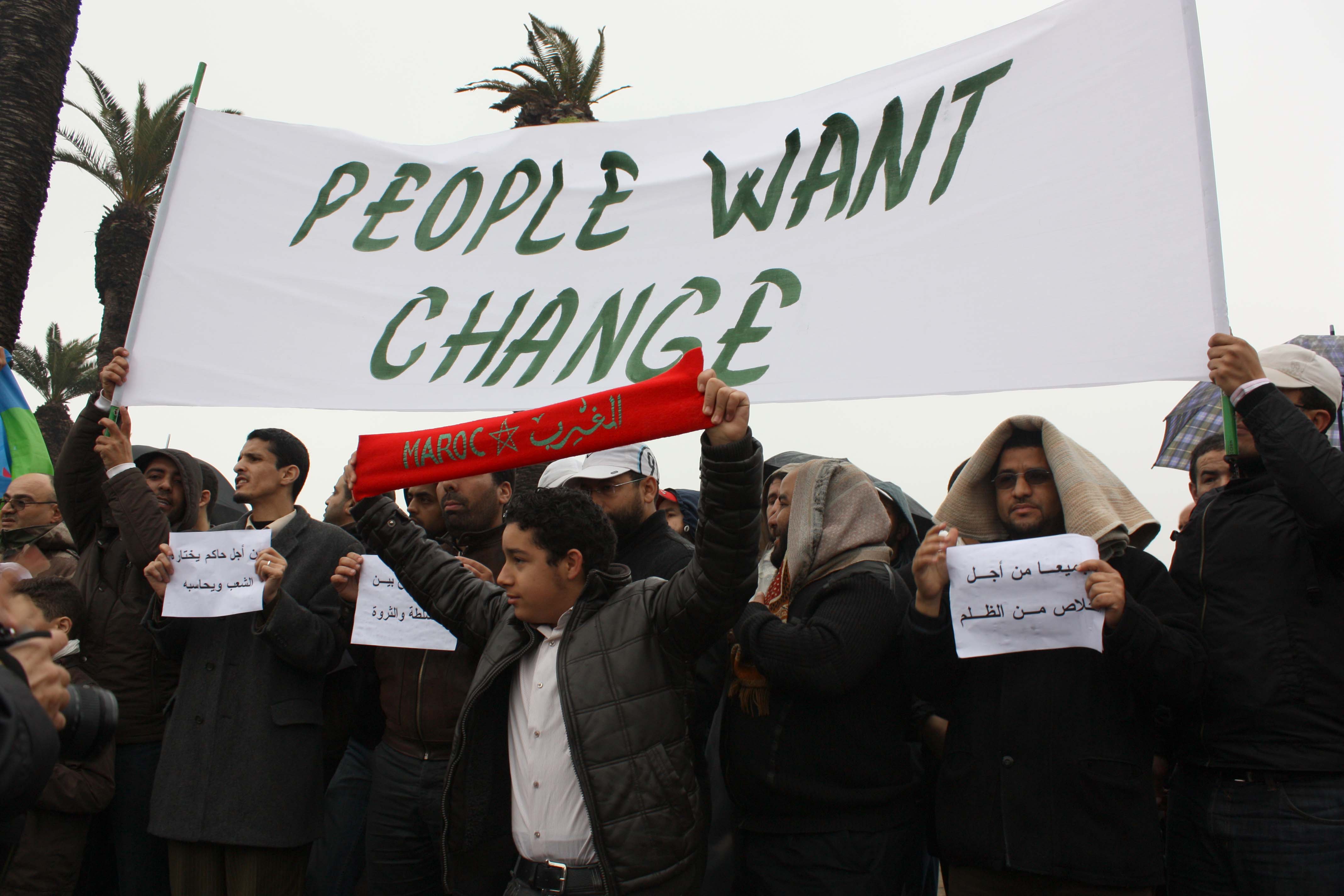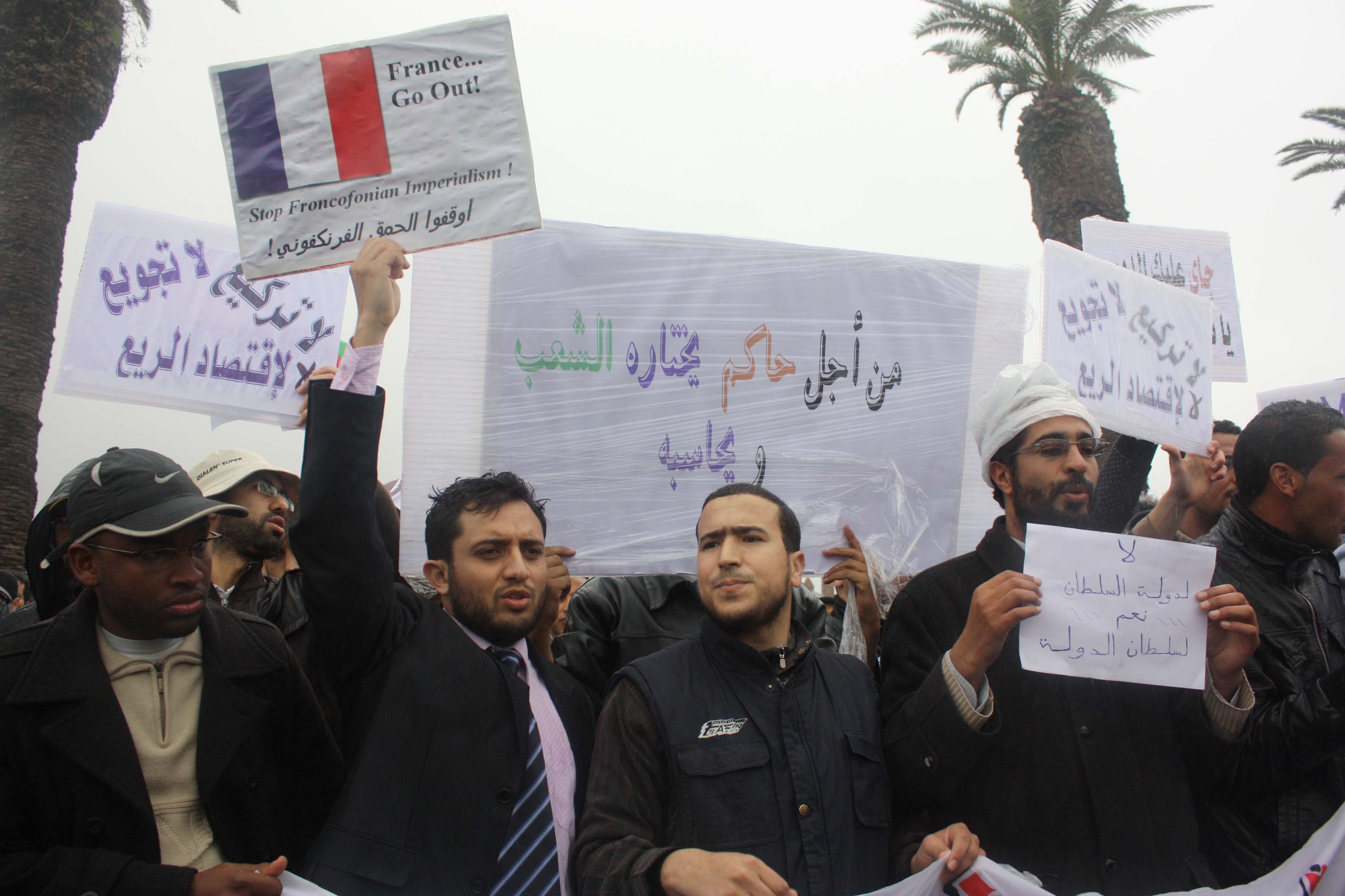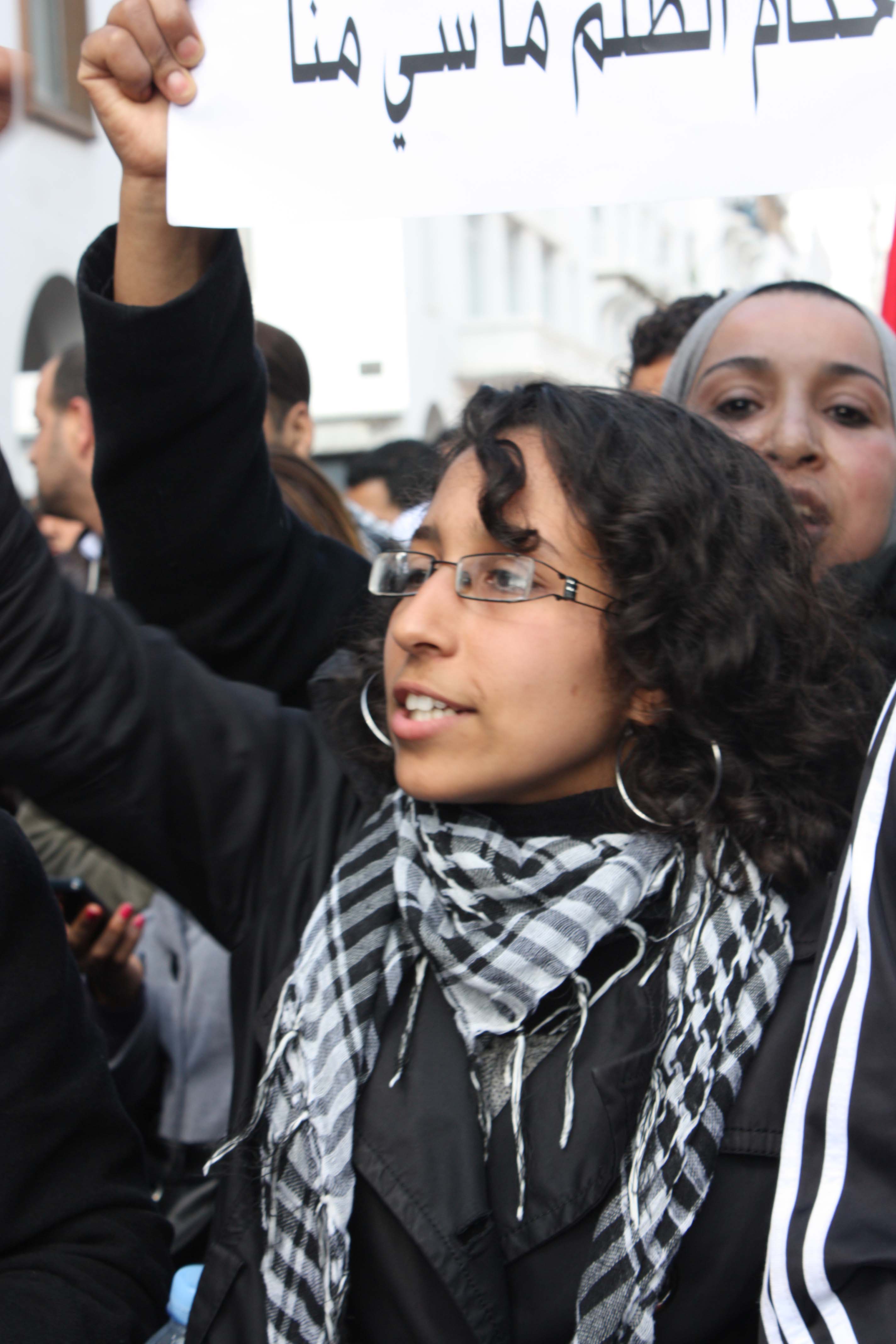 Mujeres con burkas, imágenes del Che Guevara y bereberes. Todos los Marruecos se mezclaron el 20 de Febrero.