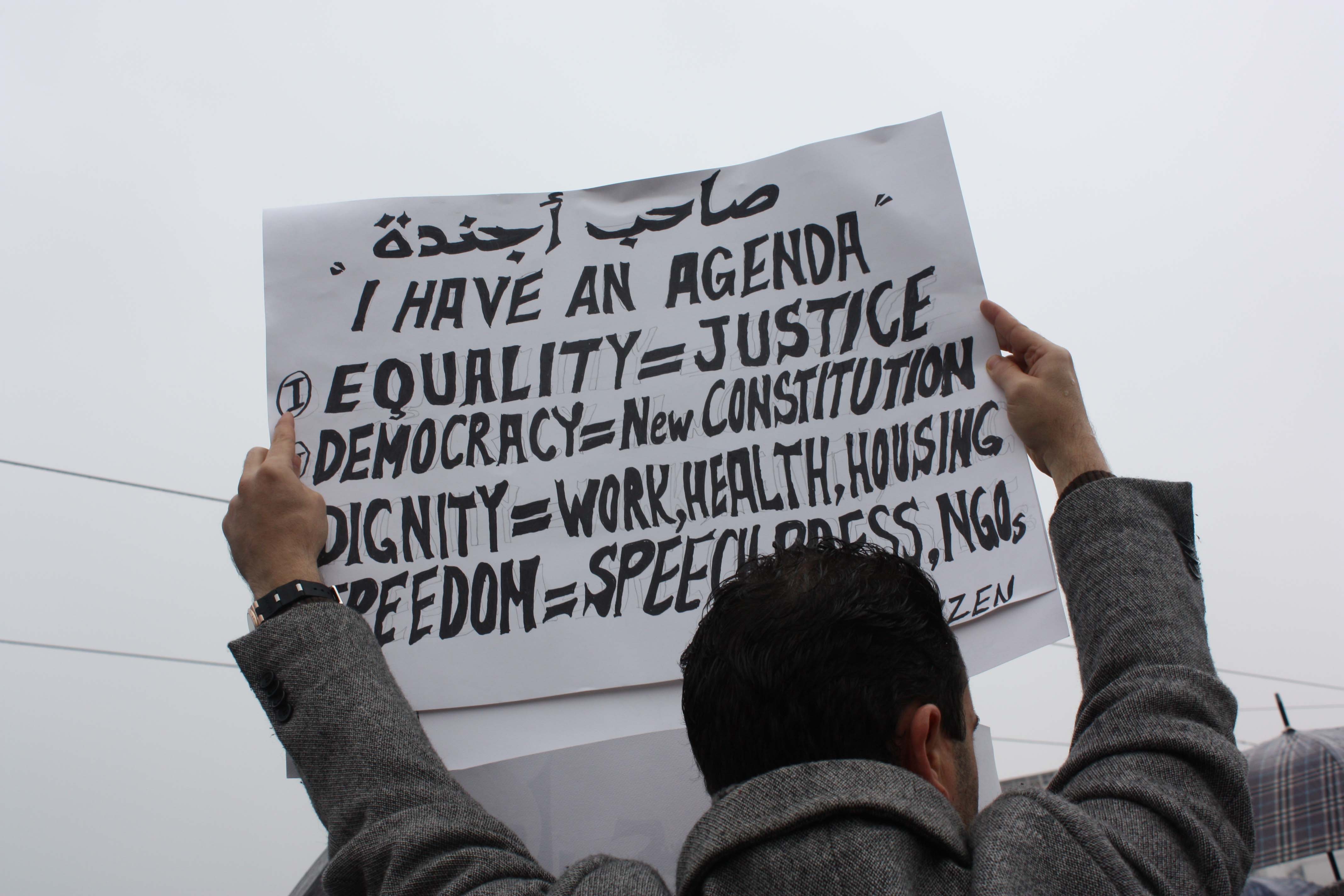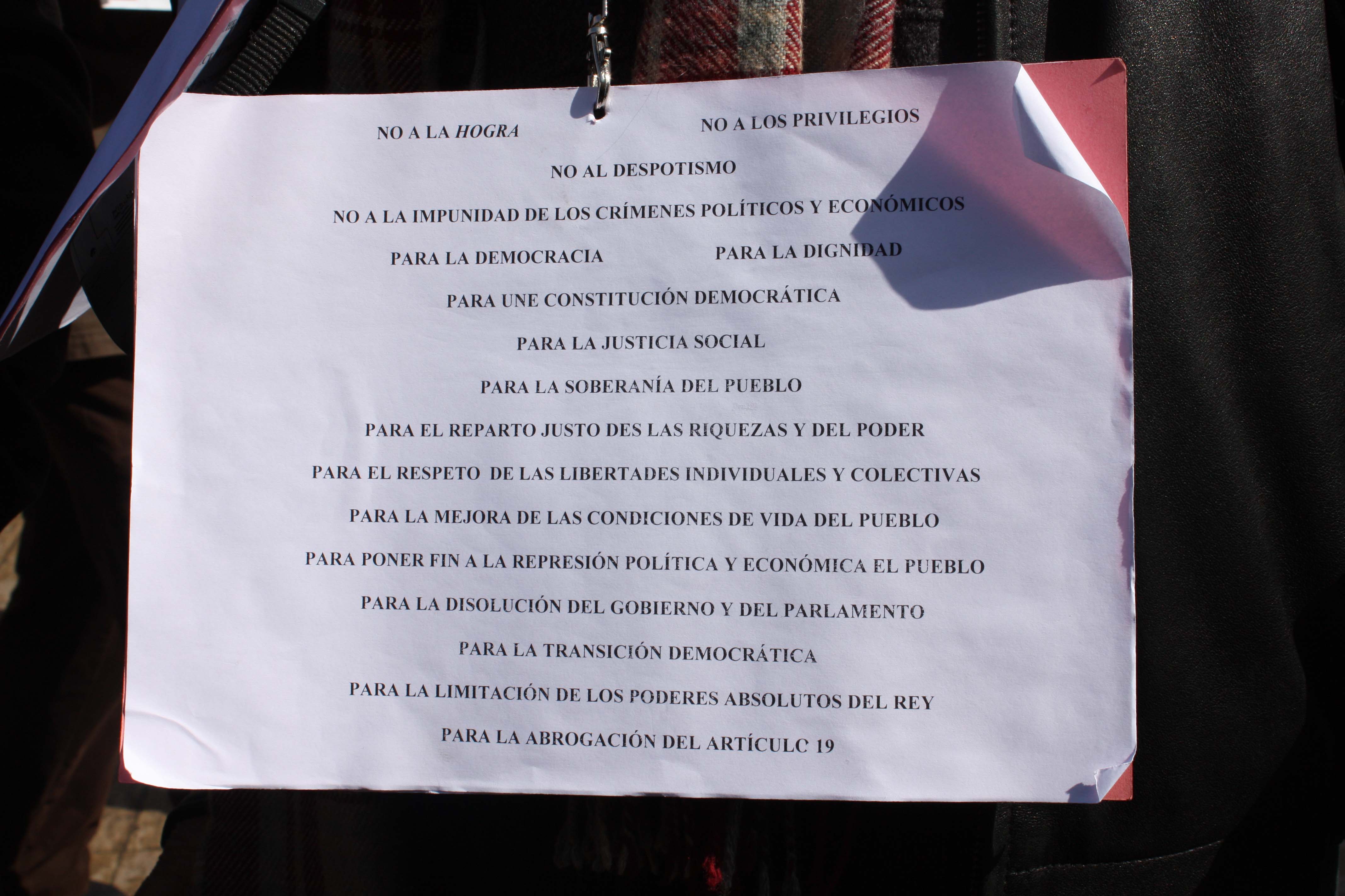En esta pancarta se resumen las demandas del 20 de Febrero.