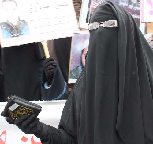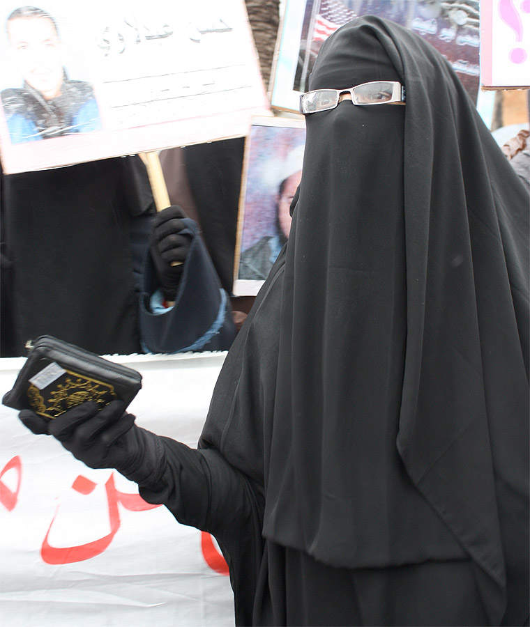 Las mujeres con burka fueron de las primeras en llegar a la manifestación