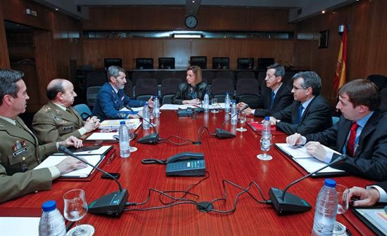 La ministra de Defensa, Carme Chacón, ha presidido esta tarde una reunión en el Estado Mayor de la Defensa para coordinar el despliegue militar español en Libia.