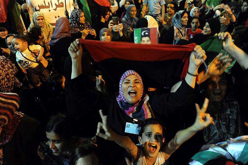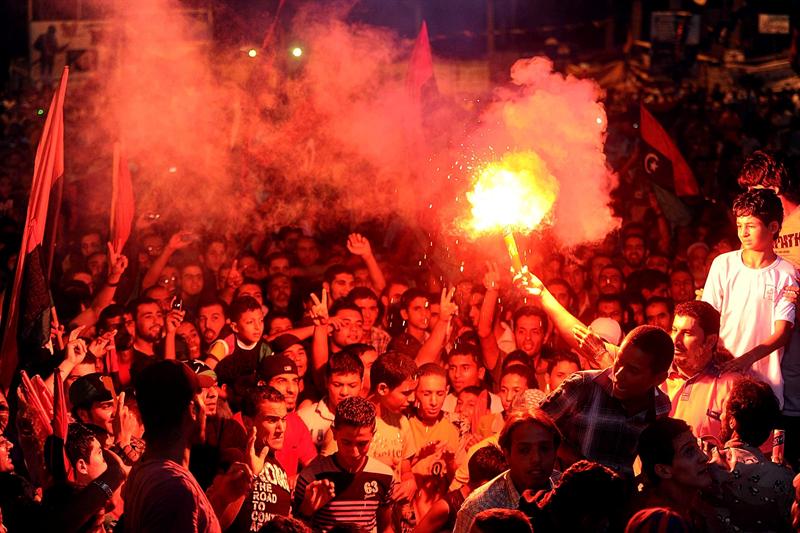 Milis y miles de libios salieron a celebrar la caída inminente del régimen de Gadafi