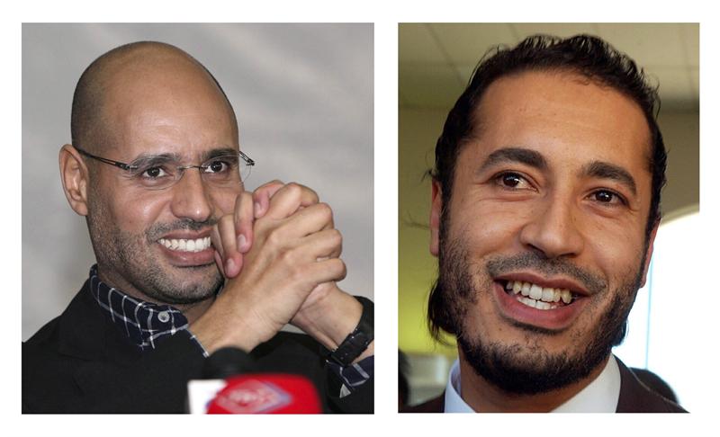 Combo de fotografías en la que aparece Al-Saadi Gadafi (derecha), tercer hijo del líder libio Muamar al Gadafi, mientras ofrece una entrevista después de llegar en un avión privado al aeropuerto de Sidney el 5 de febrero de 2005, y Saif al-Islam Gadafi (izquierda), también hijo del coronel Gadafi, mientras ofrece un discurso ante un grupo de jóvenes en Tripoli, Libia, el 10 de marzo de 2011. De acuerdo con fuentes rebeldes, ambos hermanos fueron capturados durante un sangriento combate en la capital libia después de que combatientes opositores reforzaron las fuerzas en la capital, con lo cual esperan que el final de la guerra civil que se vive en el país termine pronto