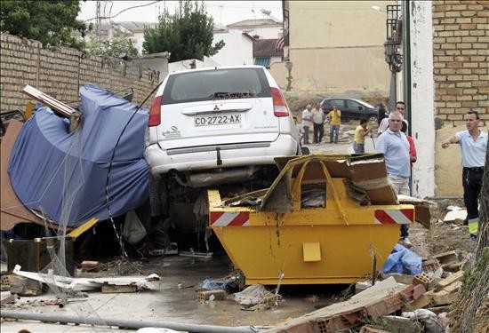 Los habitantes de la localidad cordobesa limpian como pueden las calles y casas tras las lluvias torrenciales.