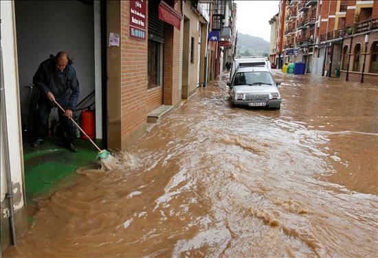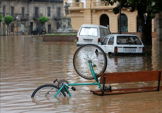 Aspecto que presenta una calle de Villaviciosa tras las inundaciones de este miércoles