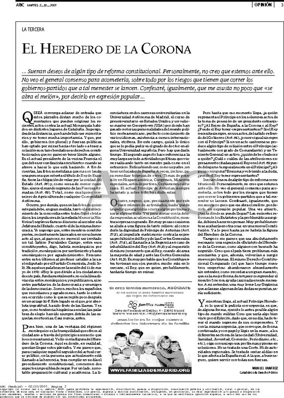 Otro artículo, en la famosa tercera, sobre el heredero al trono, alertando de los ataques a la monarquía.