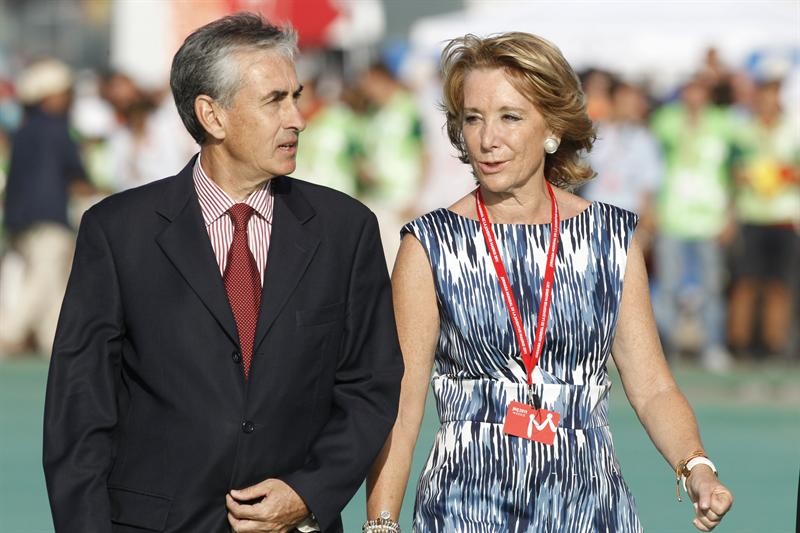 Esperanza Aguirre junto al ministro de Presidencia, Ramón Jáuregui, en el aérodromo de Cuatro Vientos.
