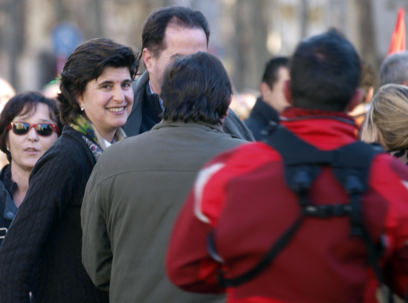 Aguirre apareció de improviso y se metió entre la gente, que no desaprovechó la ocasión de fotografiarla.