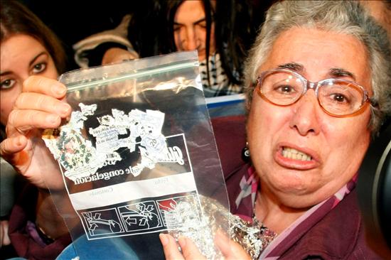 Una mumer muestra lo que queda del décimo premiado que lavó por error.