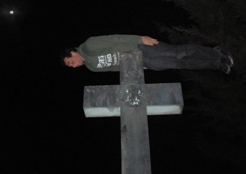 Sobre una cruz de piedra