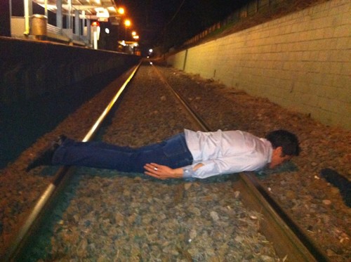 Practicando 'planking' en las vías del tren