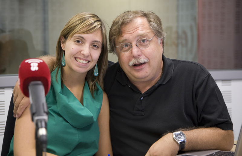 Luis Herrero junto a la subdirectora de En casa de Herrero, Sandra León, minutos antes de comenzar el programa número 1.