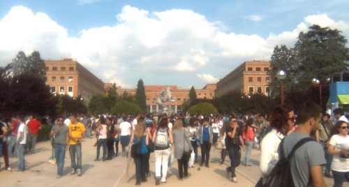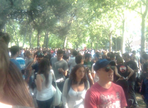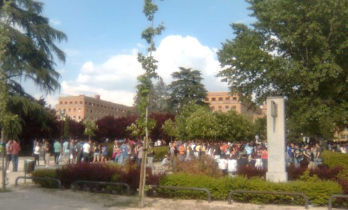 Al fondo, el Vicerrectorado de la UCM, y sus alrededores repletos de jóvenes