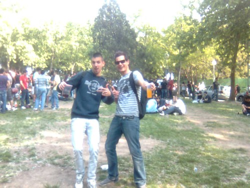 Dos estudiantes, Manuel y Víctor, posando para LD en el botellón