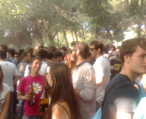 Los alrededores de la Facultad de Medicina, repletos de jóvenes haciendo botellón