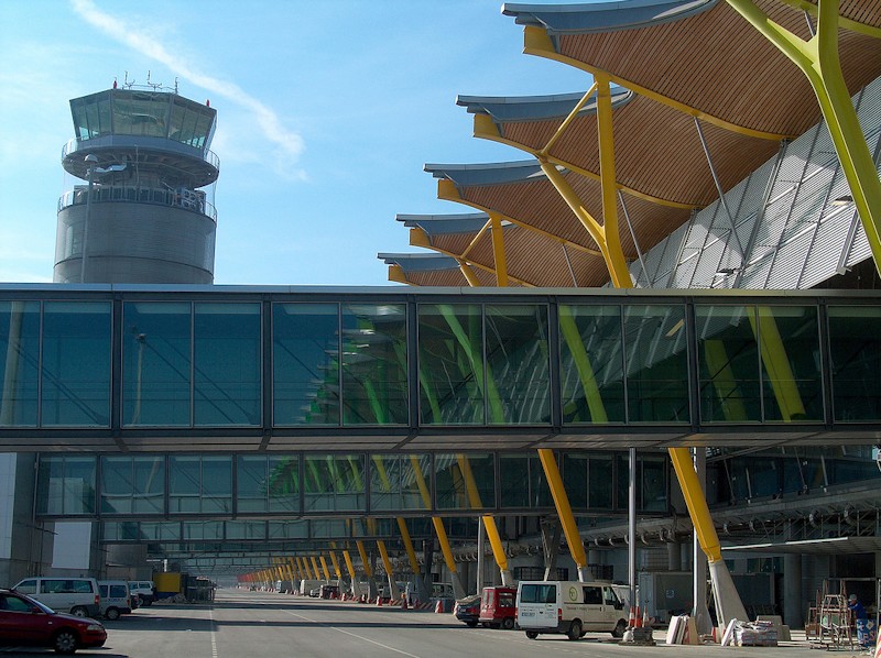 Un alto porcentaje de los visitantes de la región accede a la misma por el Aeropuerto de Barajas. Sus casi 50 millones de pasajeros lo convierten en uno de los aeródromos más transitados del mundo, y el primero de España. Se estima que Barajas aporta cerca del 10% del PIB regional. En la imagen la T4, la más nueva de sus terminales.