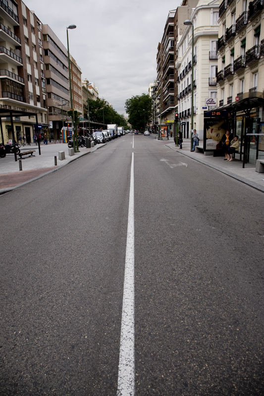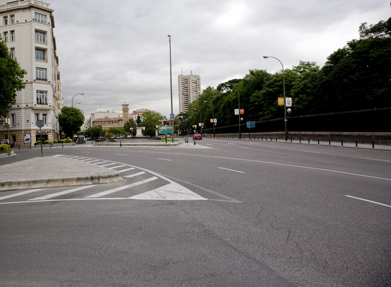 Entre Marqués del Duero y Colón la Castellana bajaba (y subía) totalmente vacía poco antes de las cinco de la tarde. Ni los domingos.