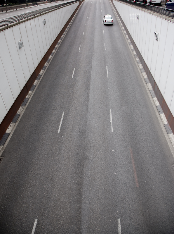 El túnel que comunica O'Donnell con la calle de Alcalá presentaba este aspecto, con un solitario taxi haciendo el trayecto de vacío.