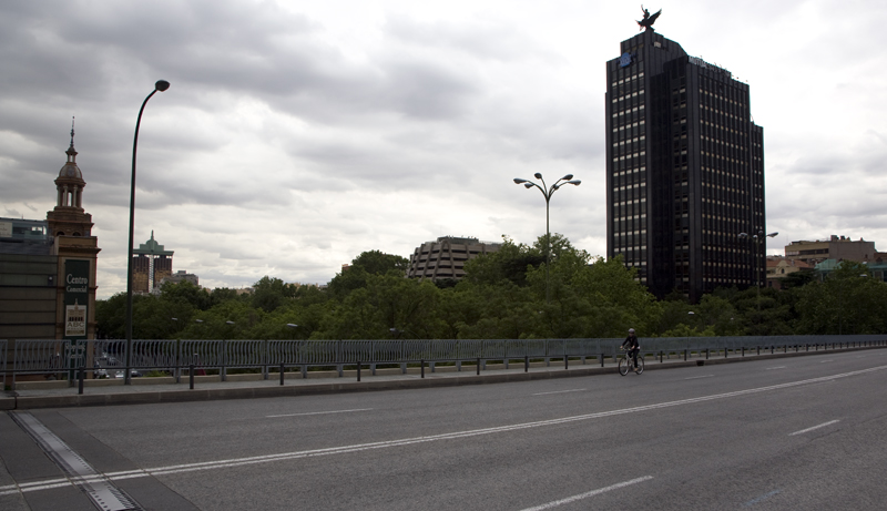 El paso elevado de Juan Bravo apenas tenía tráfico rodado más allá de los taxis y alguna bicicleta como la de la imagen.