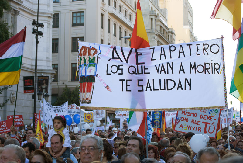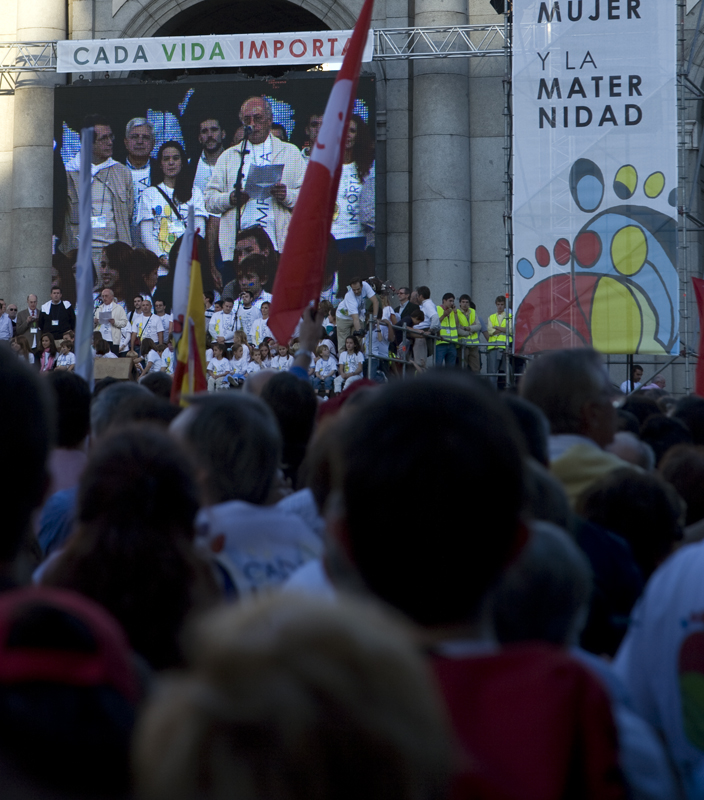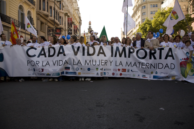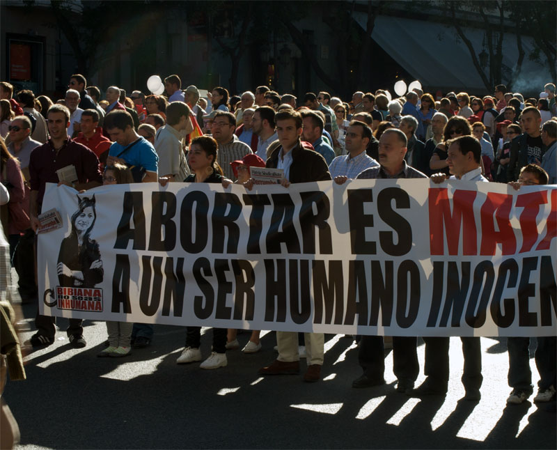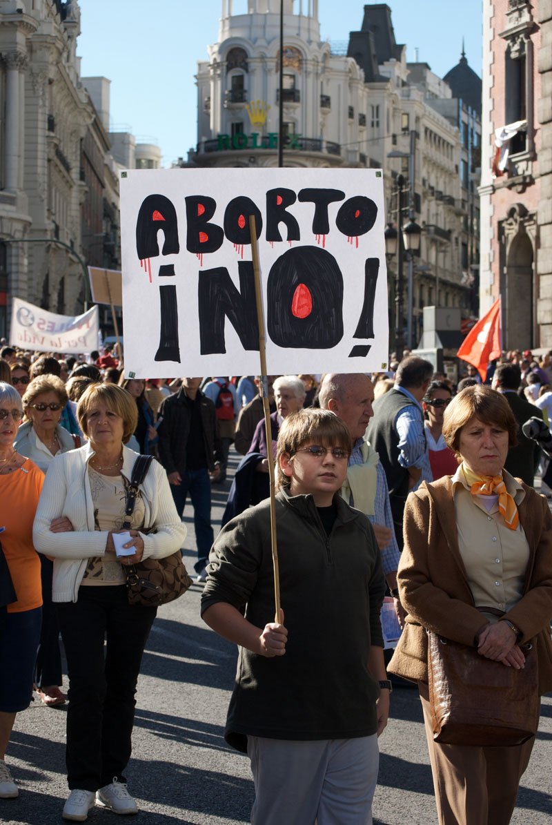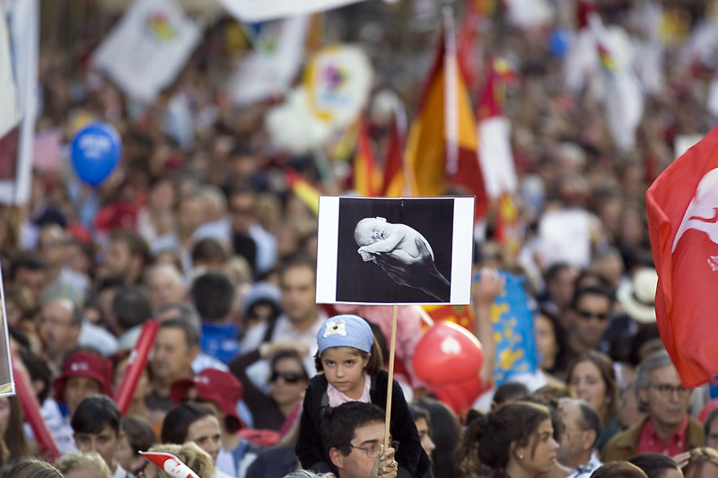 Más imágenes de carteles en la manifestación por la vida de este sábado en Madrid. (EFE)
