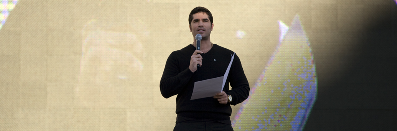 El actor mexicano Eduardo Verástegui se dirige a la multitud.