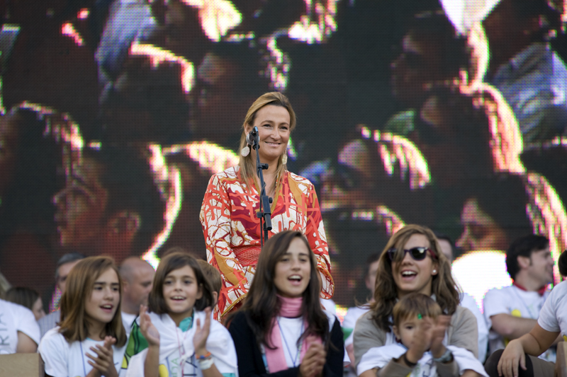 Isabel Durán recibe los aplausos del público tras la lectura del manifiesto.