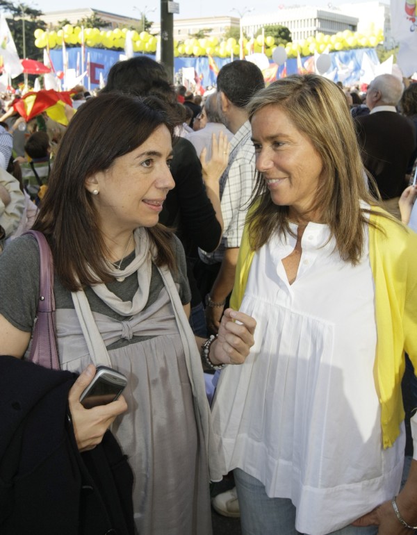 Sandra Moneo, portavoz del PP en la subcomisión del aborto en el Congreso, conversa con Ana Mato, vicesecretaria de organización del PP en la manifestación de este sábado en Madrid a favor de la vida. (Foto: PP)