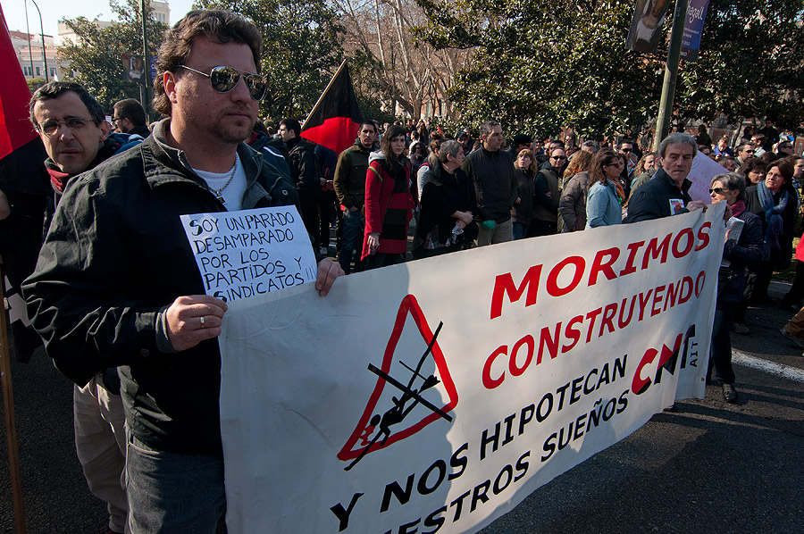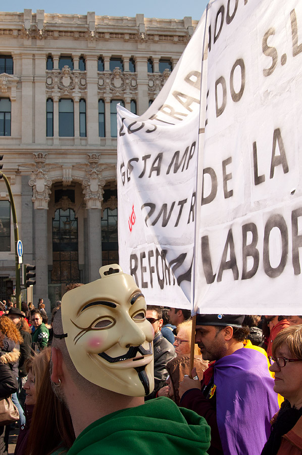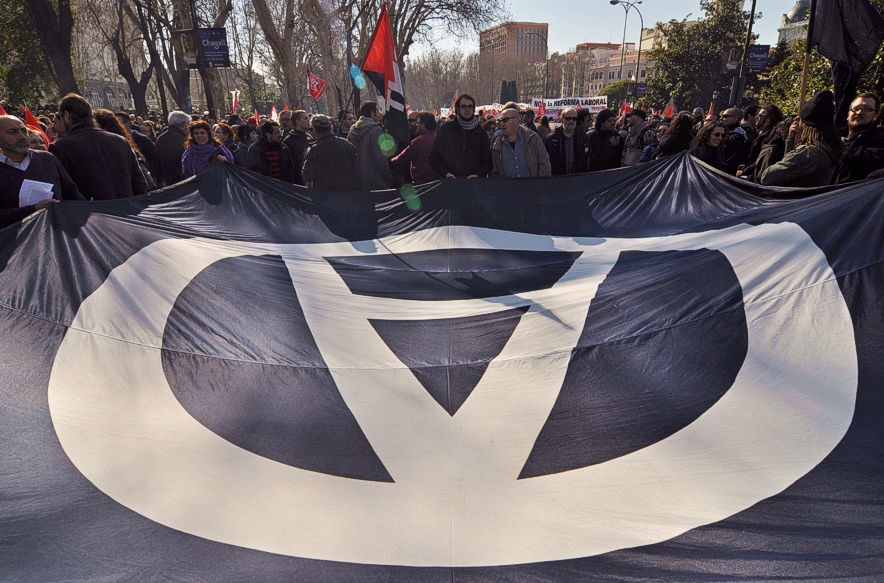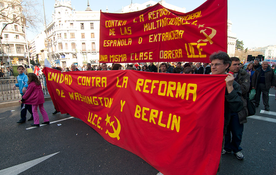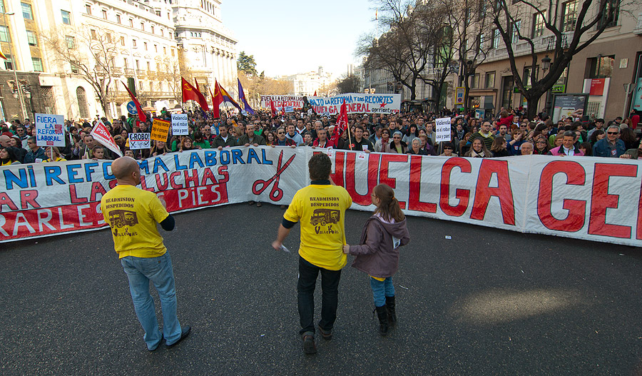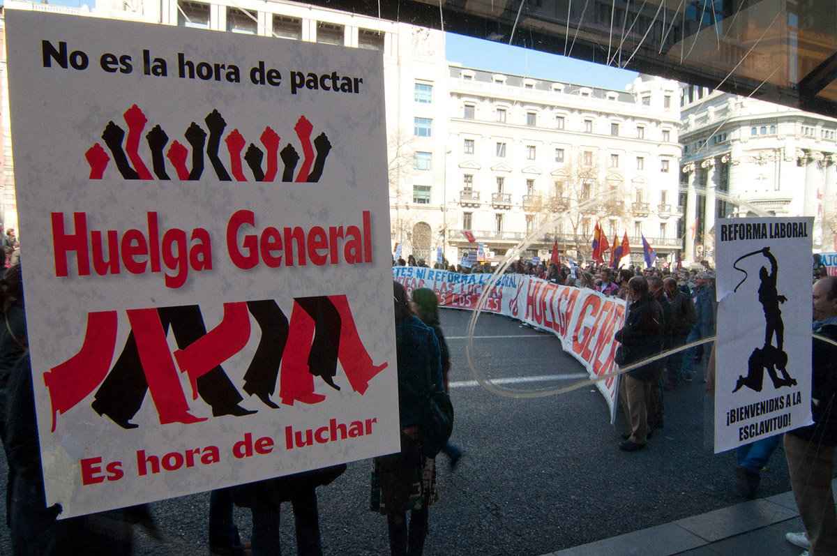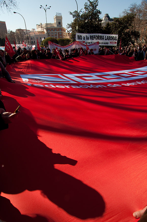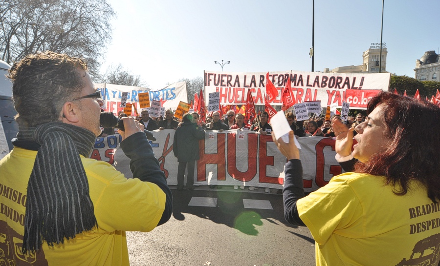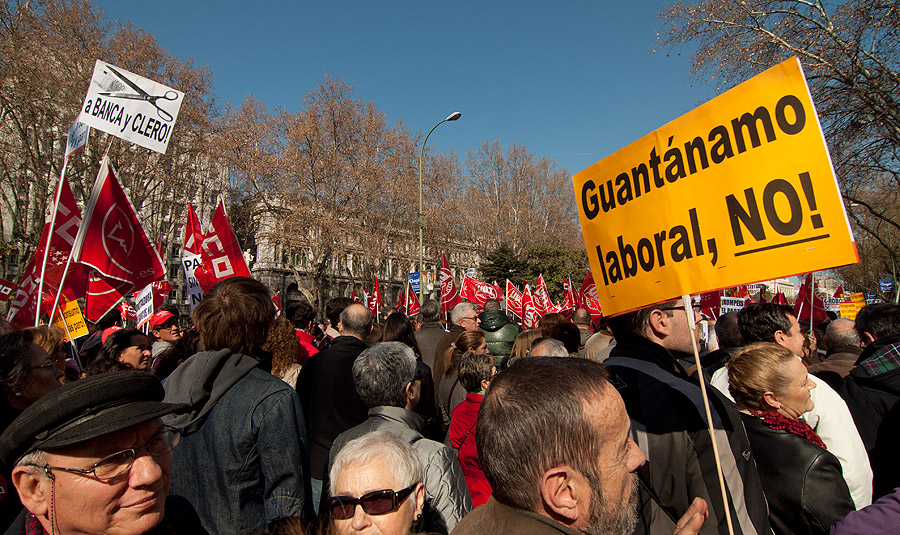 Los sindicatos protestan contra la reforma laboral del PP.