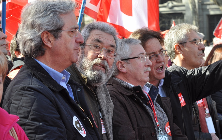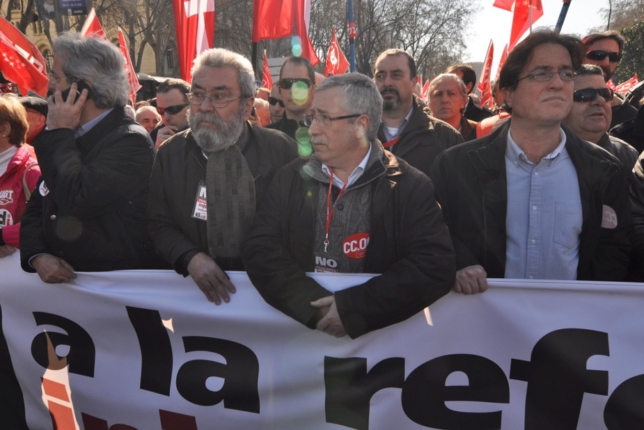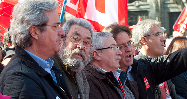 José Ricardo Martínez (el sindicalista - banquero), Cándido Méndez, Toxo y Javier López, en la cabecera de la manifestación
