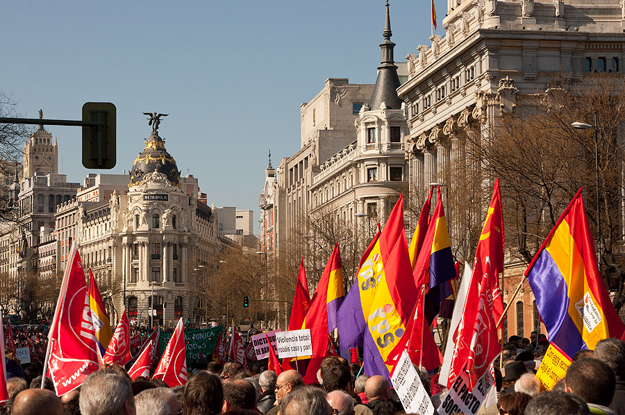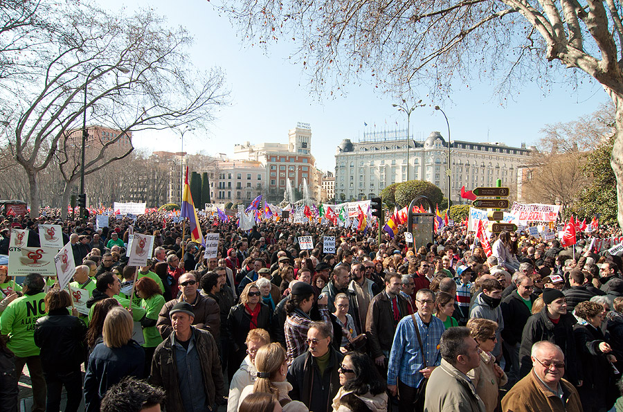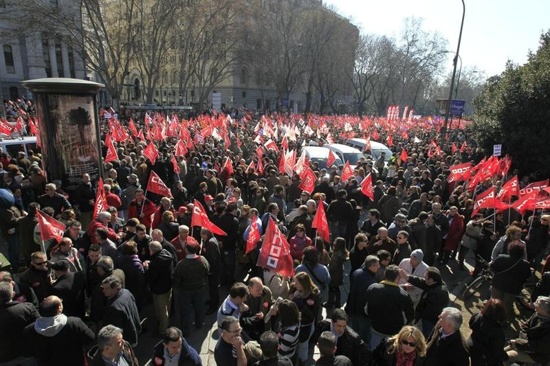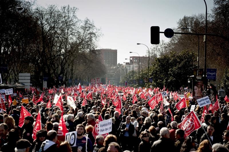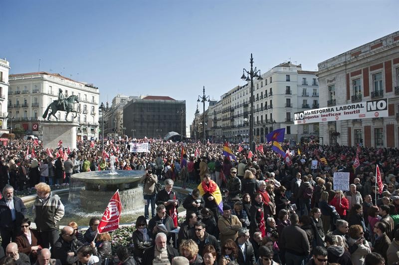 Vista general de la manifestacion en Madrid en la que han participado miles de personas contra la reforma laboral. Efe/Luca Piergiovanni