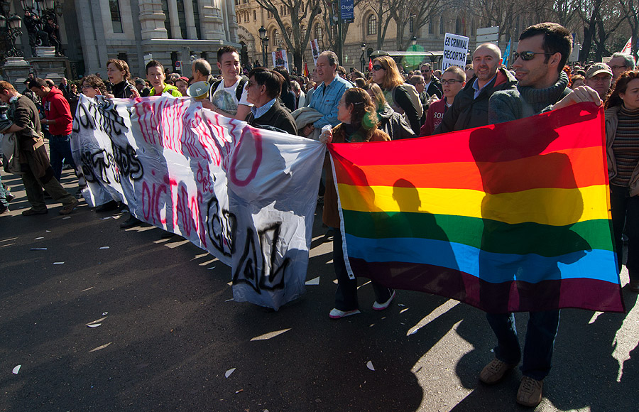 El símbolo de los grupos gays, también en la manifestación