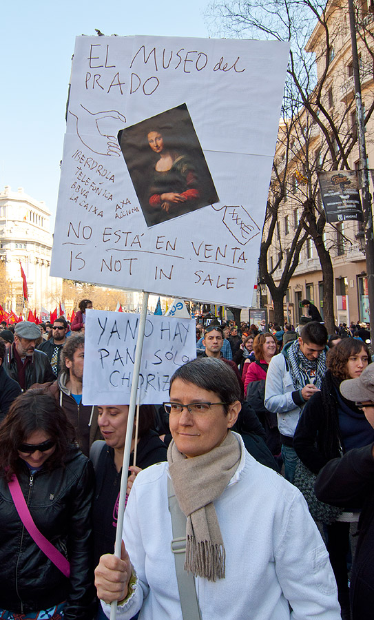 Una incomprensible pancarta sobre el Museo del Prado que muestra cierto desconocimiento del inglés (sería "not for sale")