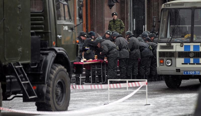 Agentes rusos desplegados en la capital, en una pausa para la comida.