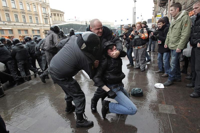 La Policía detiene a un manifestante en San Petersburgo.