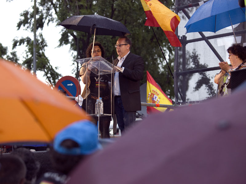 Los grandes protagonistas de la plaza fueron, aparte de las banderas de España, los paraguas.