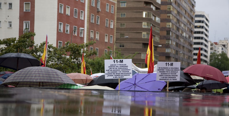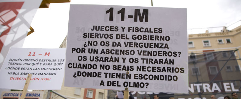 Una pancarta relativa al 11-M, ¿dónde tienen escondido a Del Olmo?