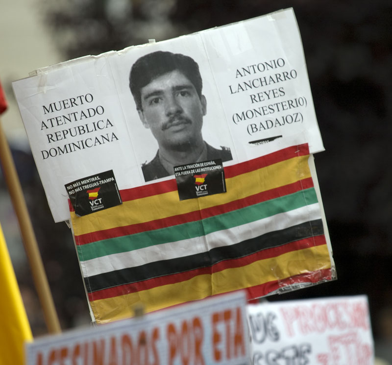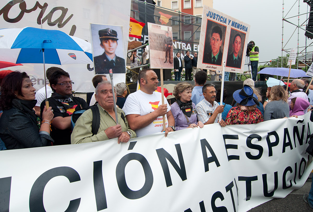 Un recuerdo a uno de los guardias civiles asesinados por la ETA en 1986 en la misma plaza donde se estaba celebrando la concentración.