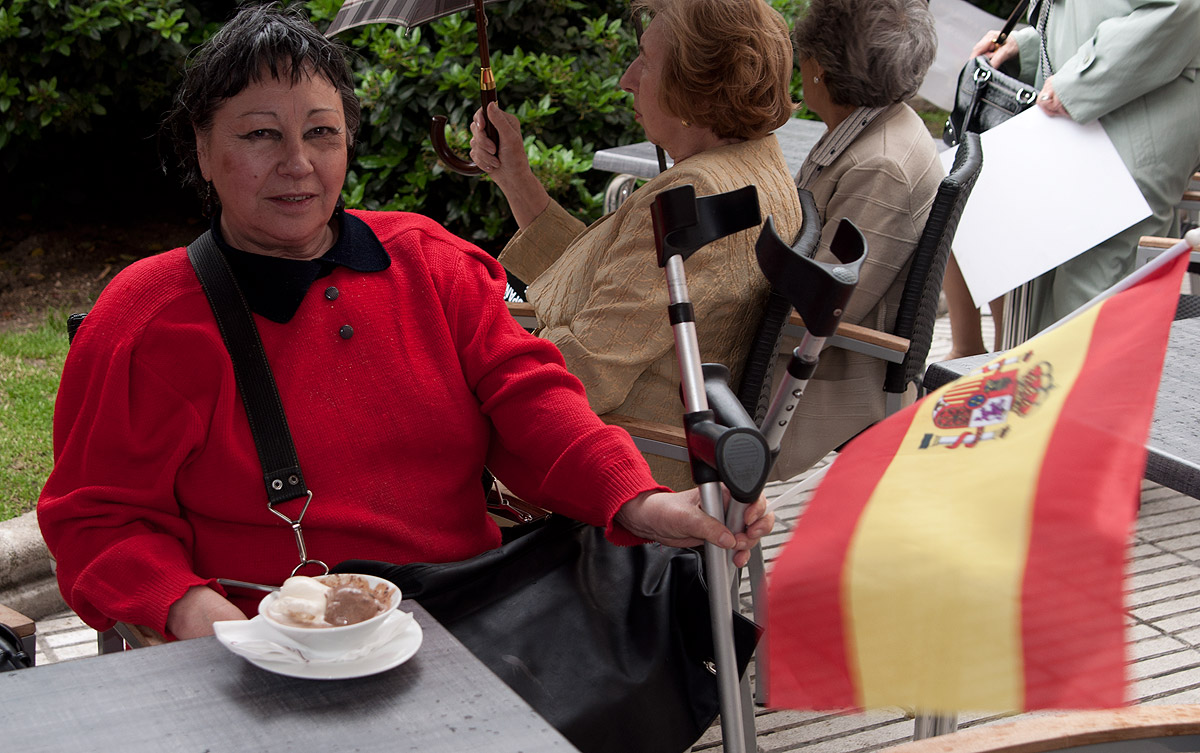 Una mujer que se ha acercado a la concentración con muletas, poco antes de empezar