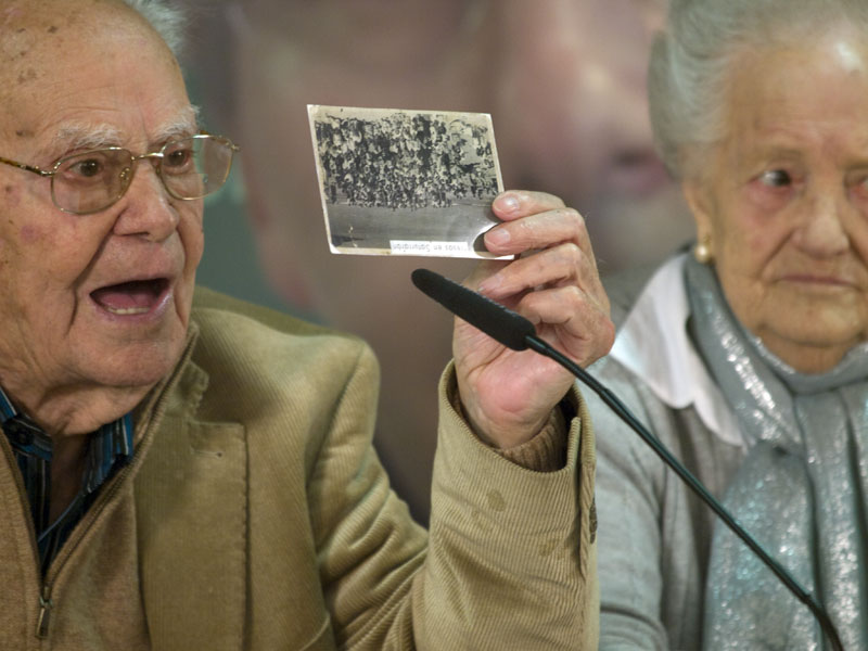 Gervasio Puerta, presidente de la Asociación de Ex Presos Antifranquistas, muestra una foto de época. Detrás Concha Carretero.