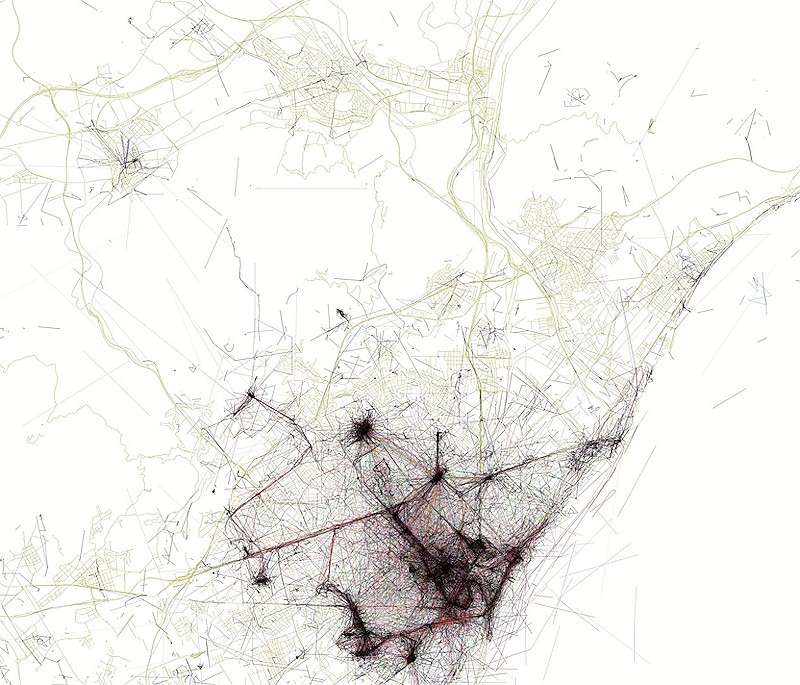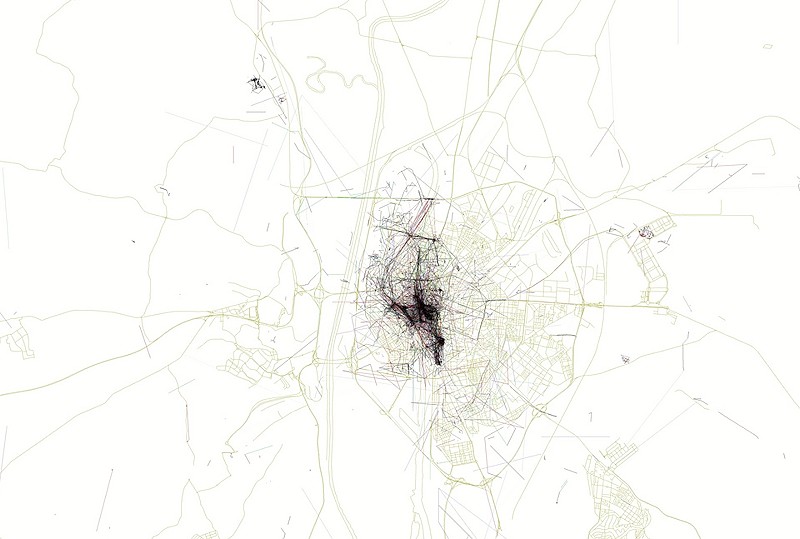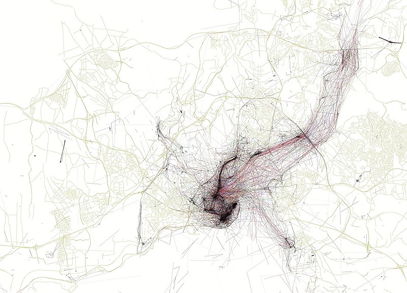 Mapas que muestran, a través de la geolocalización de imágenes en internet, las zonas más fotografiadas de las ciudades más fotografiadas de España y el mundo.