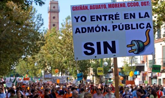 Entre 30.000 y 50.000 personas han recorrido el centro de Sevila para protestar por el "enchufismo" de la Junta.