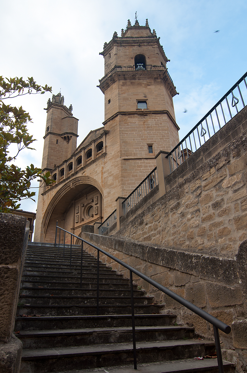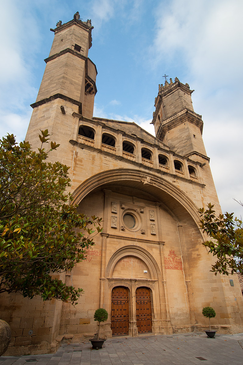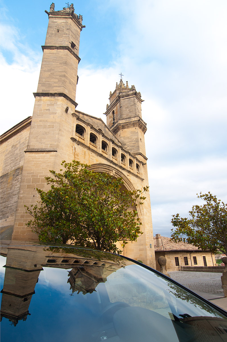 La espectacular iglesia parroquial de Elciego se levanta sobre una plataforma elevada, lo que hace que desde las afueras sea todo un referente visual