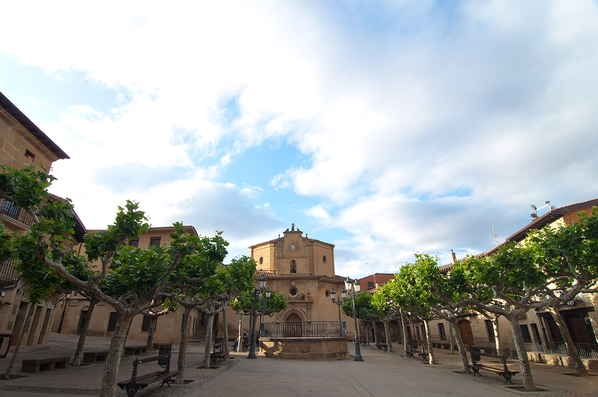 La Plaza Mayor de Elciego, cerrada por la ermita de un lado y el Ayuntamiento del otro y con su pequeño escenario descubierto, es un lugar con mucho encanto