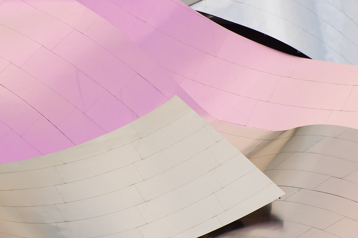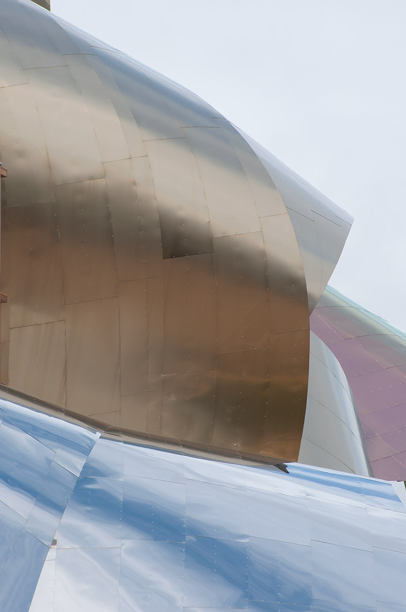 Las diferentes formas y los distintos colores hacen que el edificio de Gehry se un placer para los ojos: uno pasaría las horas muertas contemplándolo
