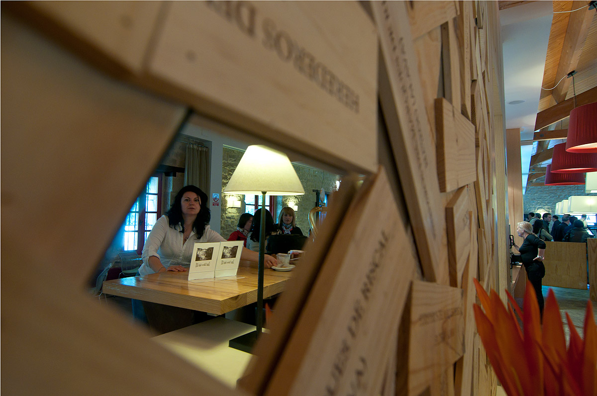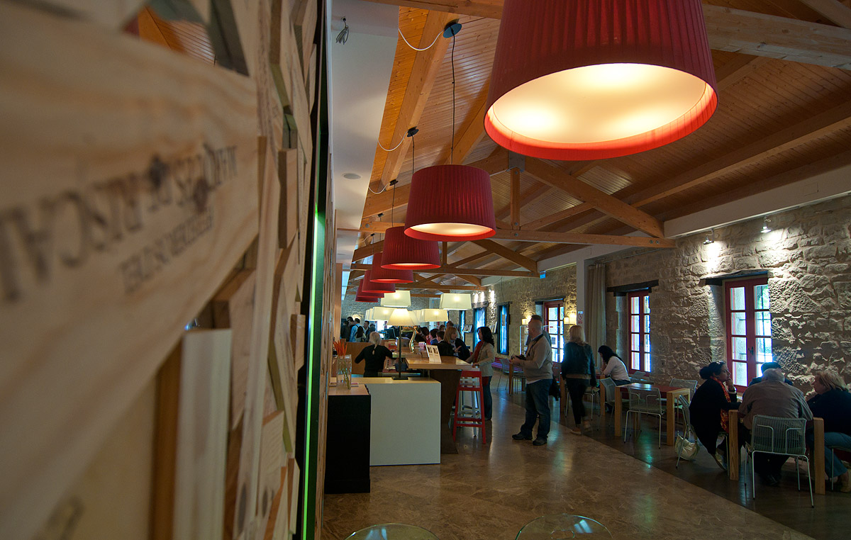 Instalada en uno de los edificios antiguos de la bodega la tienda - cafetería tiene, sin embargo, una decoración muy moderna