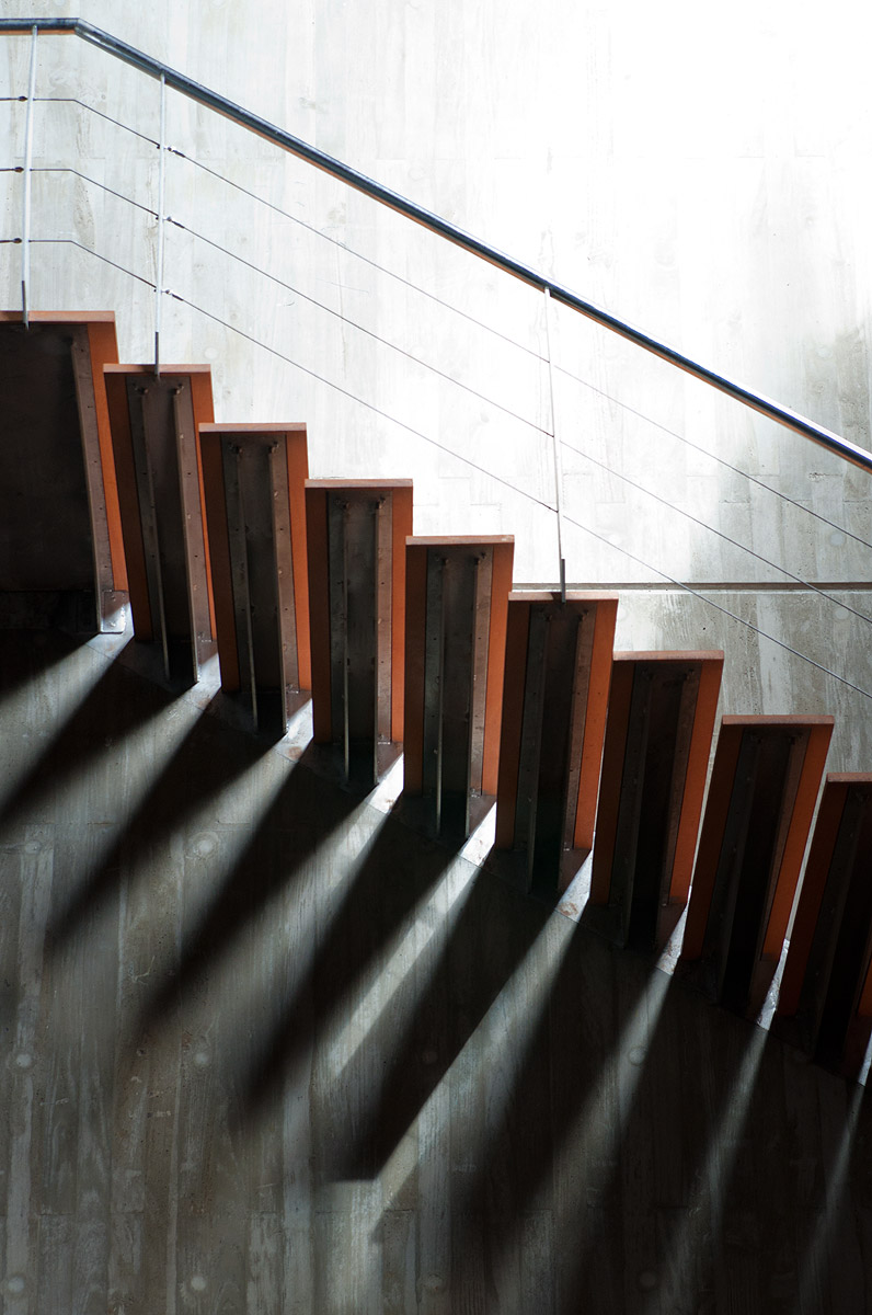 En un estilo eminentemente más funcional, la bodega también tiene detalles arquitectónicos muy interesantes, como esta escalera tan minimalista