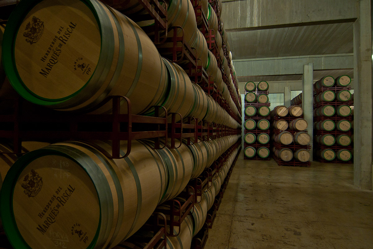 Como todo en Marqués de Riscal el espacio para los toneles es grandioso y, como un signo de los tiempos, todo está preparado para que el manejo que necesitan las barricas esté totalmente mecanizado