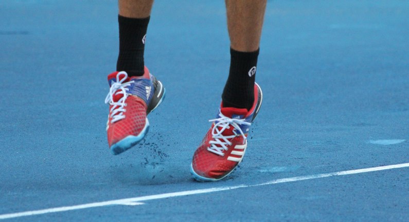 La tierra azul del Mutua Madrid Open es objeto de críticas por parte de la mayoría de tenistas. "Es imposible jugara así", dijo Djokovic (en la imagen vemos las zapatillas del tenista serbio), para cargar a continuación las tintas contra la ATP porque "no ha tenido en cuenta la opinión ni la voz de los jugadores".
